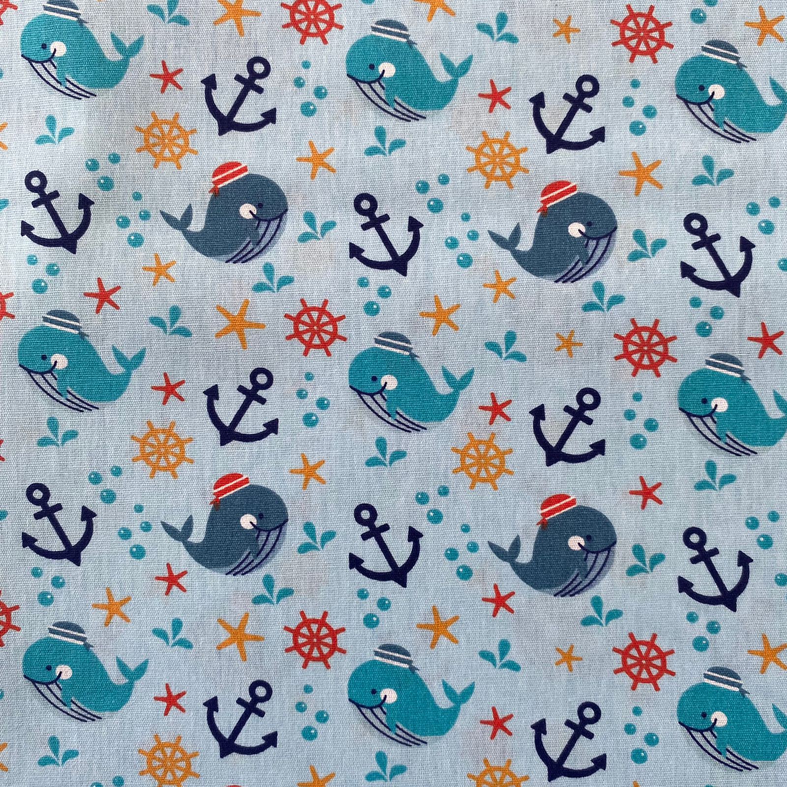 -Tecido: TRICOLINE ESTAMPADA (BALEIA E ANCORA)