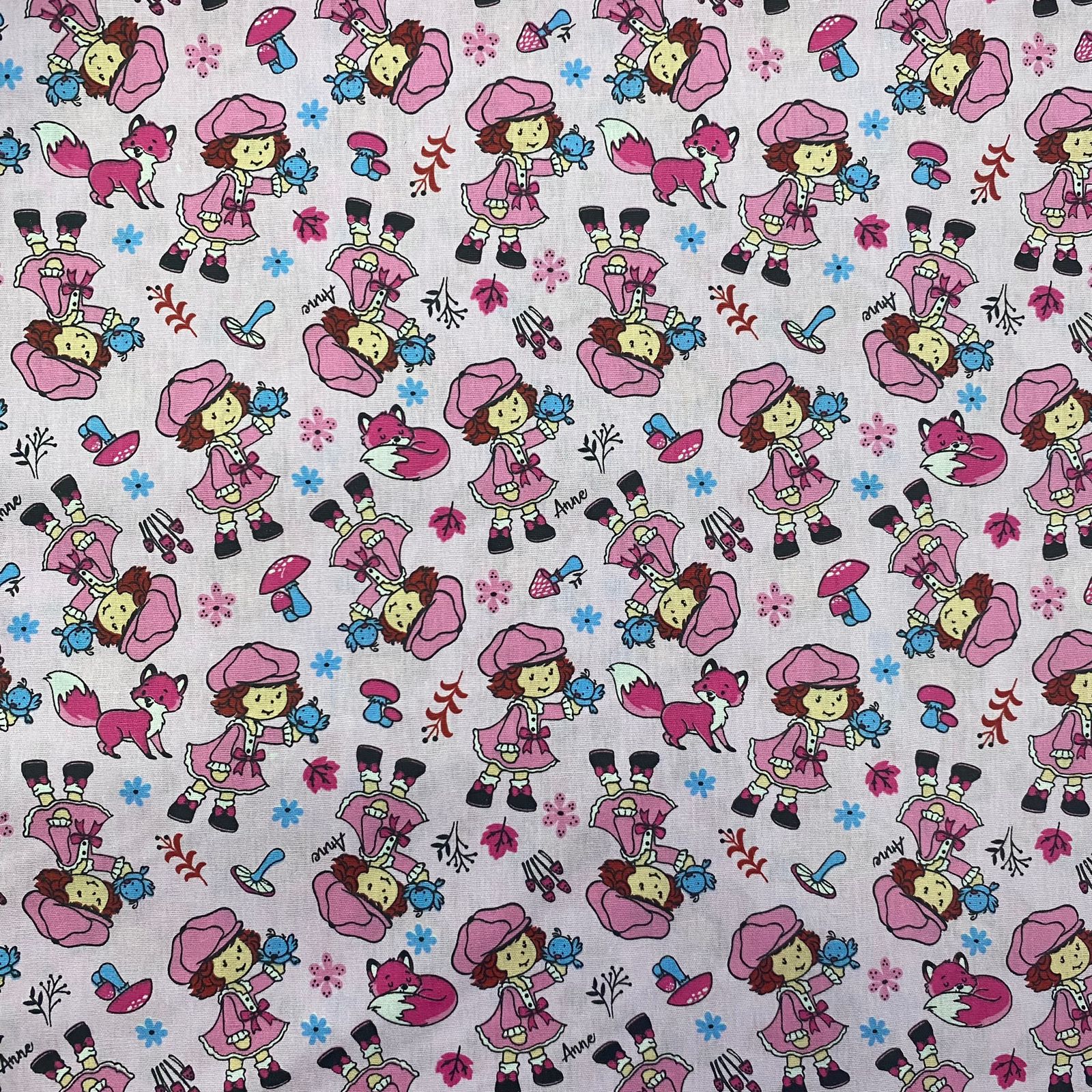 -Tecido: TRICOLINE ESTAMPADA (MENINA E PASSARINHO)