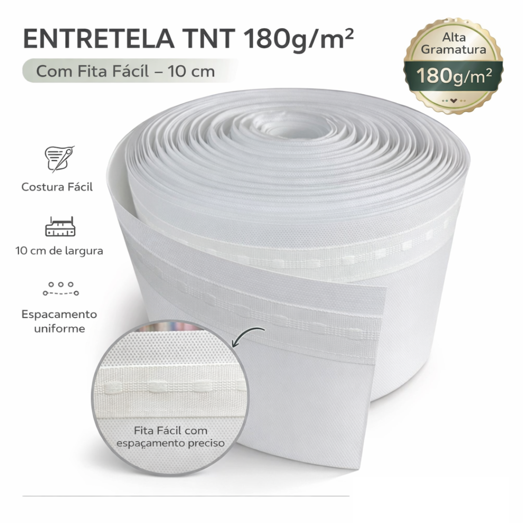 Entretela TNT 180g/m² 10cm + Fita Fácil – Branca | Com Espaçamento