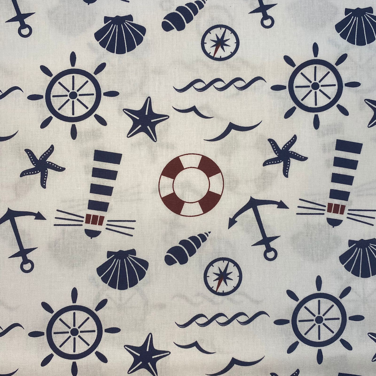 -Tecido: TRICOLINE ESTAMPADA (ANCORA E CONCHAS)