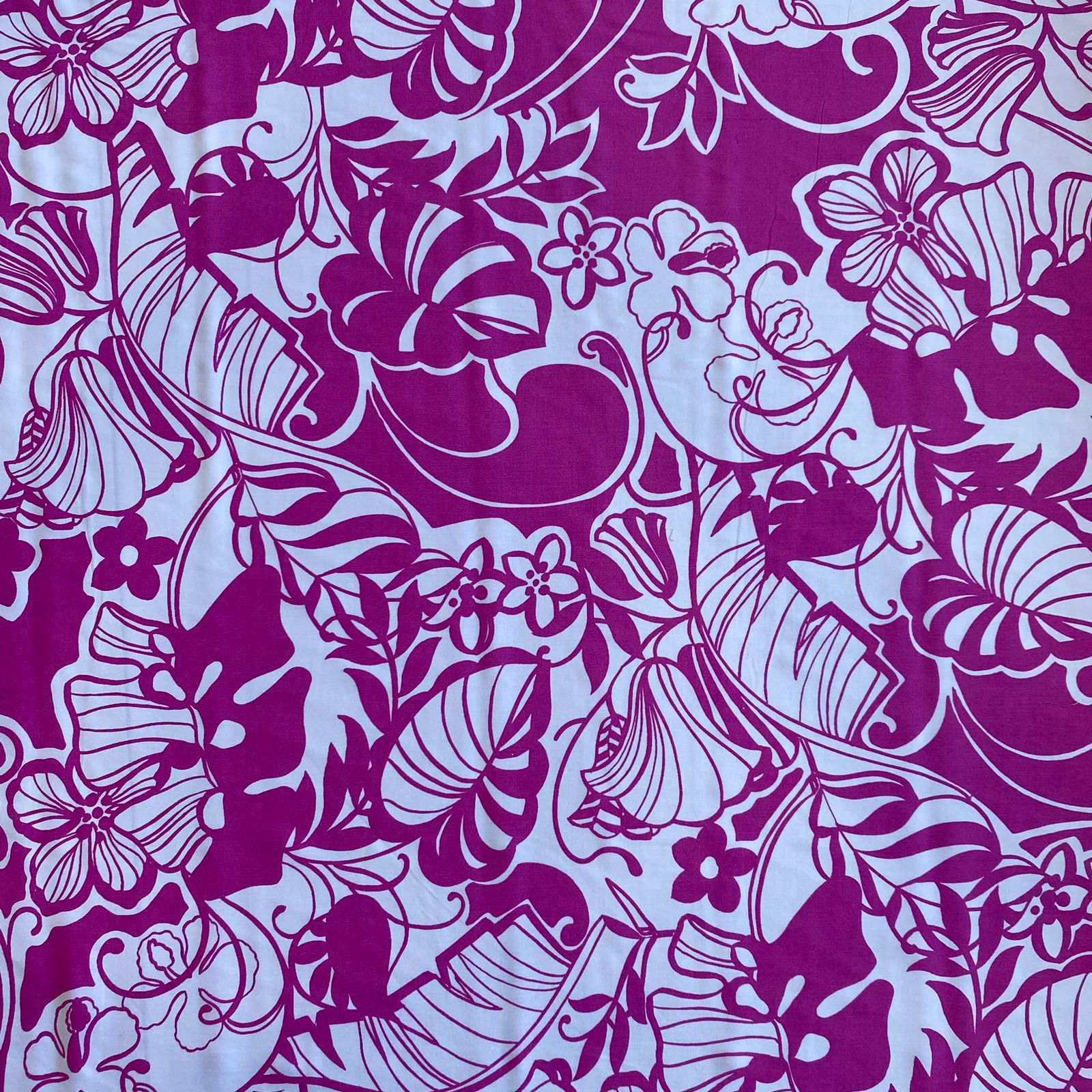 TECIDO VISCOSE ESTAMPADA (FLOR BRANCA FUNDO ROXO)