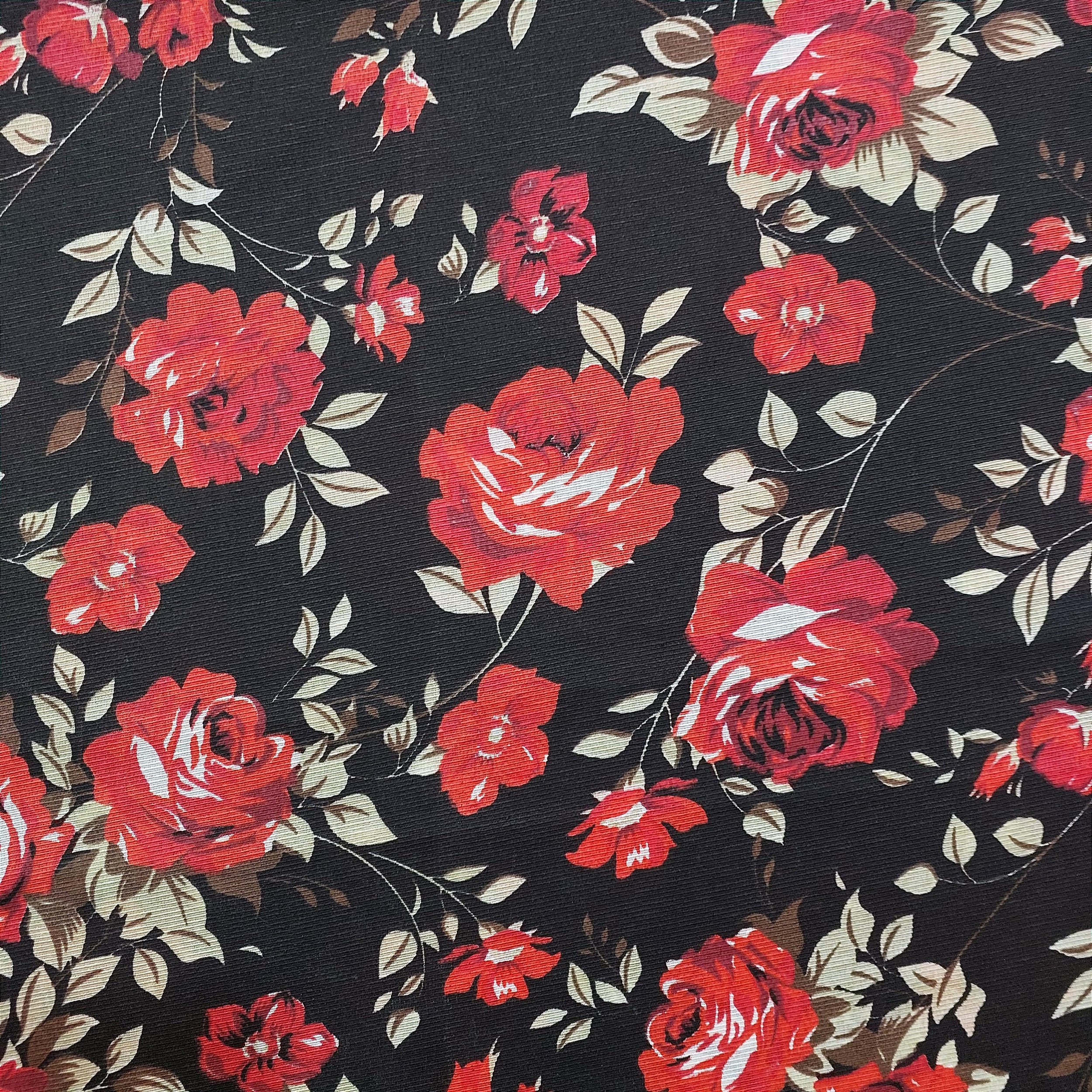 | Tecido: | Gorgurinho | Flores Vermelhas Fundo Preto |
