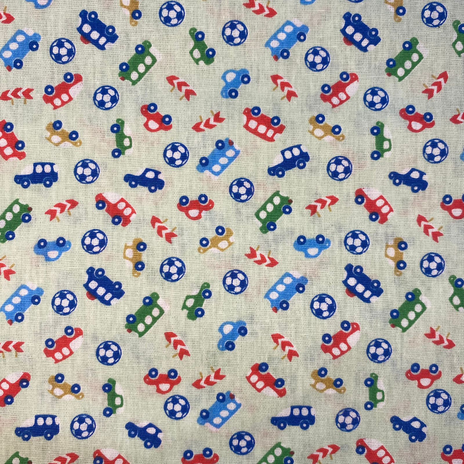 -Tecido: TRICOLINE ESTAMPADA (CARROS E BOLA DE FUTEBOL)