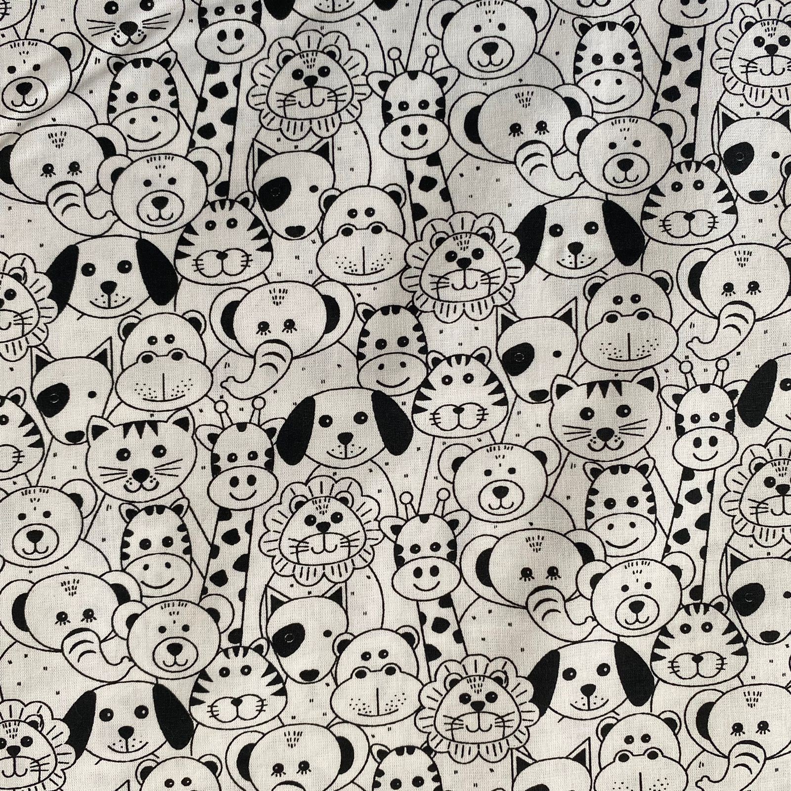 -Tecido: TRICOLINE ESTAMPADA (ANIMAIS PRETO E BRANCO)