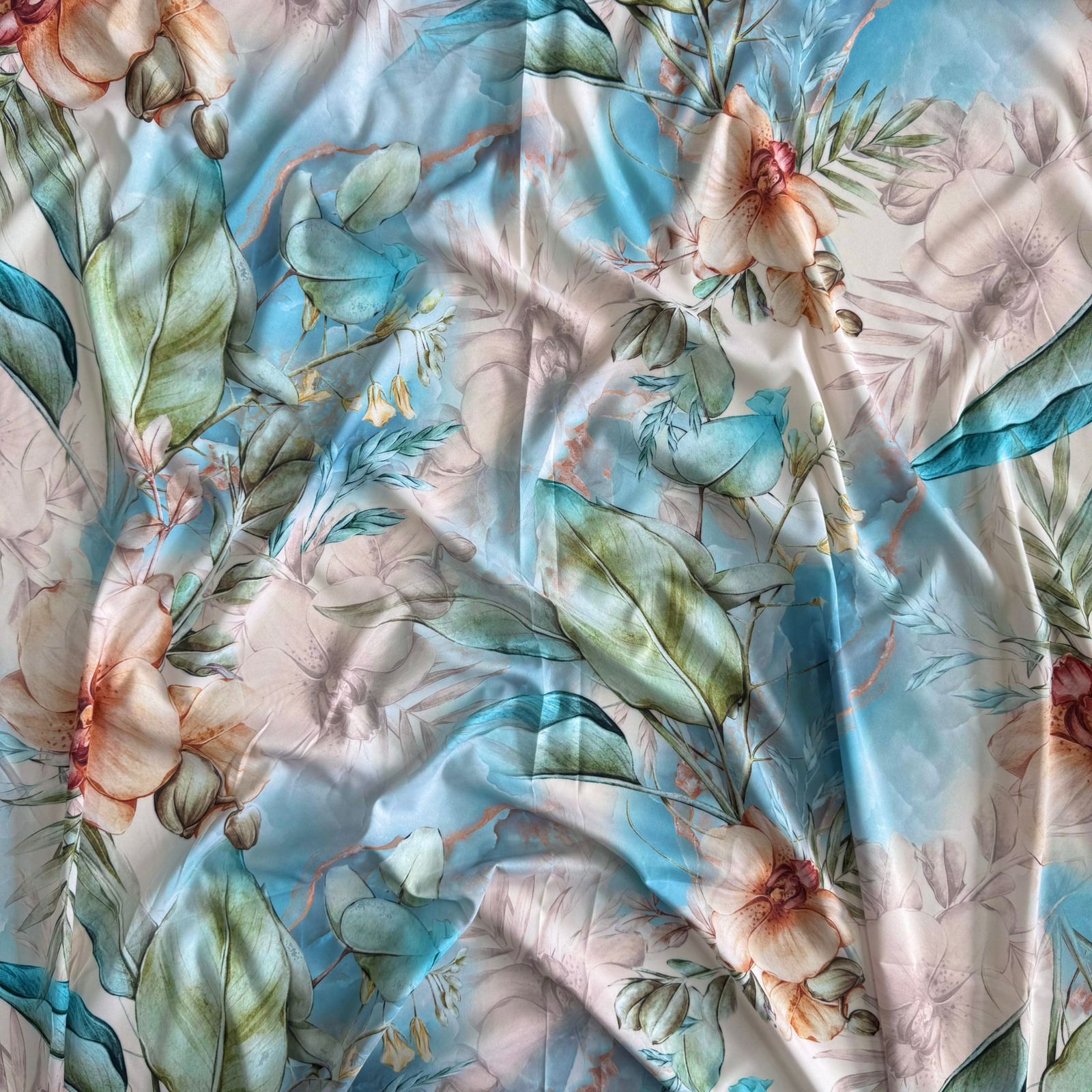 TECIDO CREPE BEGÔNIA SEDA DIGITAL | 1,47m | Floral Azul Marmorizado 03