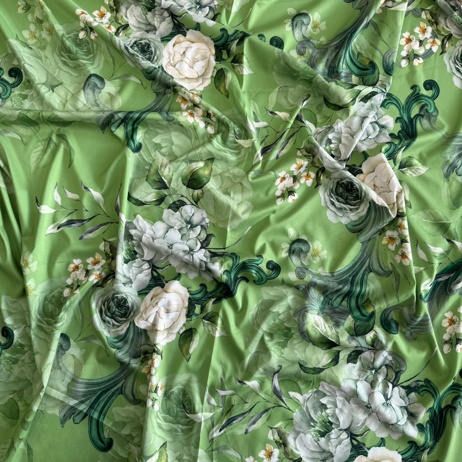 TECIDO CREPE BEGÔNIA SEDA DIGITAL | 1,47m | Floral Verde C/ Perola 04