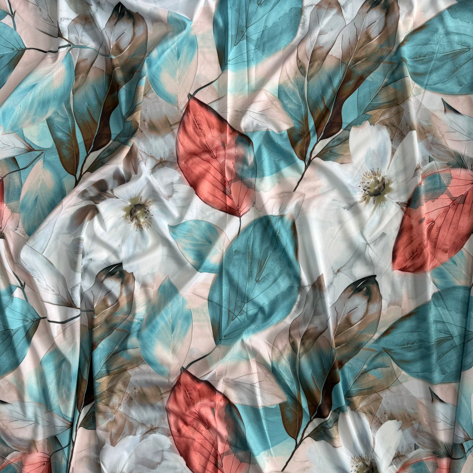 TECIDO CREPE BEGÔNIA SEDA DIGITAL | 1,47m | Verde Água C/ Bege 05