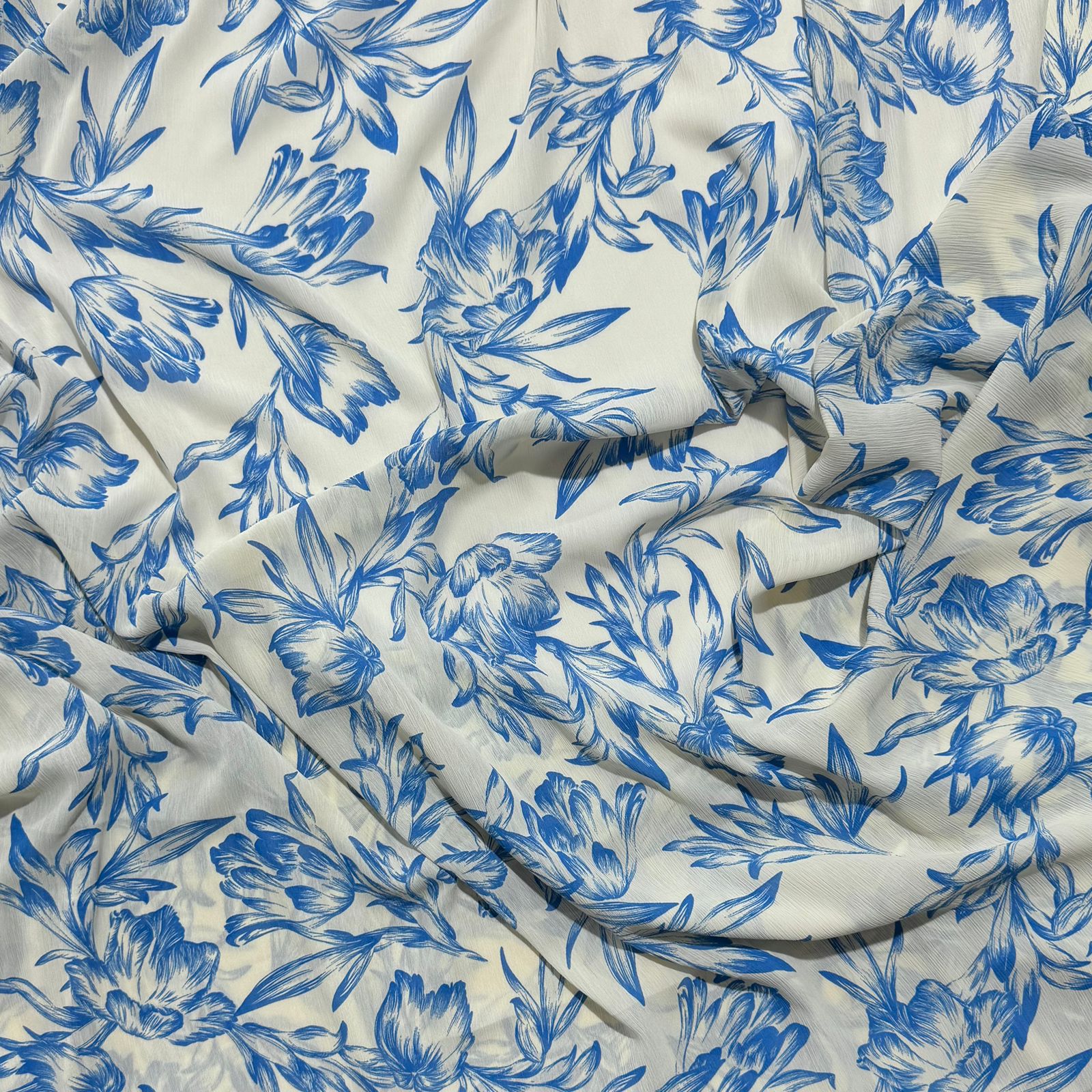 TECIDO CREPE MOUSSELINE | 1,50m - 100% Poliéster | Floral Azul