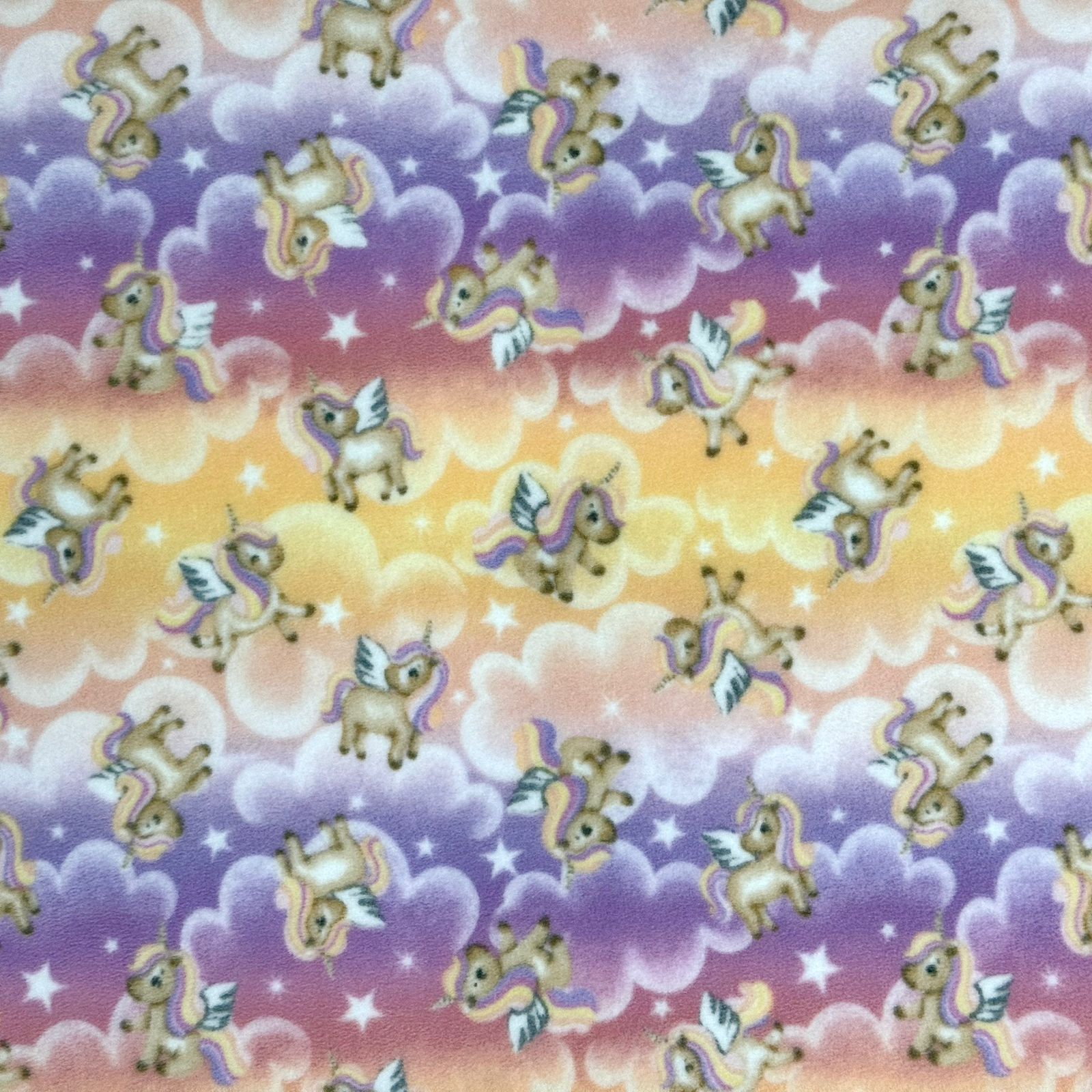 TECIDO MICROSOFT PETTENATI ESTAMPADO | 1m X 1,63m | UNICORNIO AMARELO/ ROXO 02369G