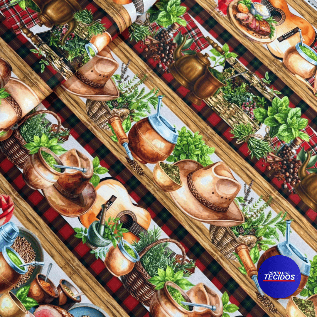 Tecido Tricoline Barrada Digital 10 Barrados 100% Algodão - 0,55cm X 1,50m - Chimarrão Gúcho 3749