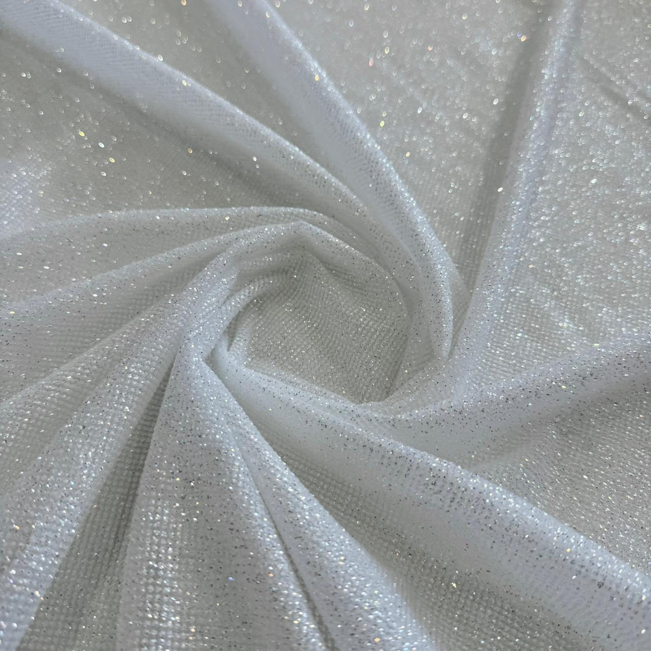 Tecido Tule com Glitter Mágico Holográfico | 1,50m - 100% Poliamida | Branco