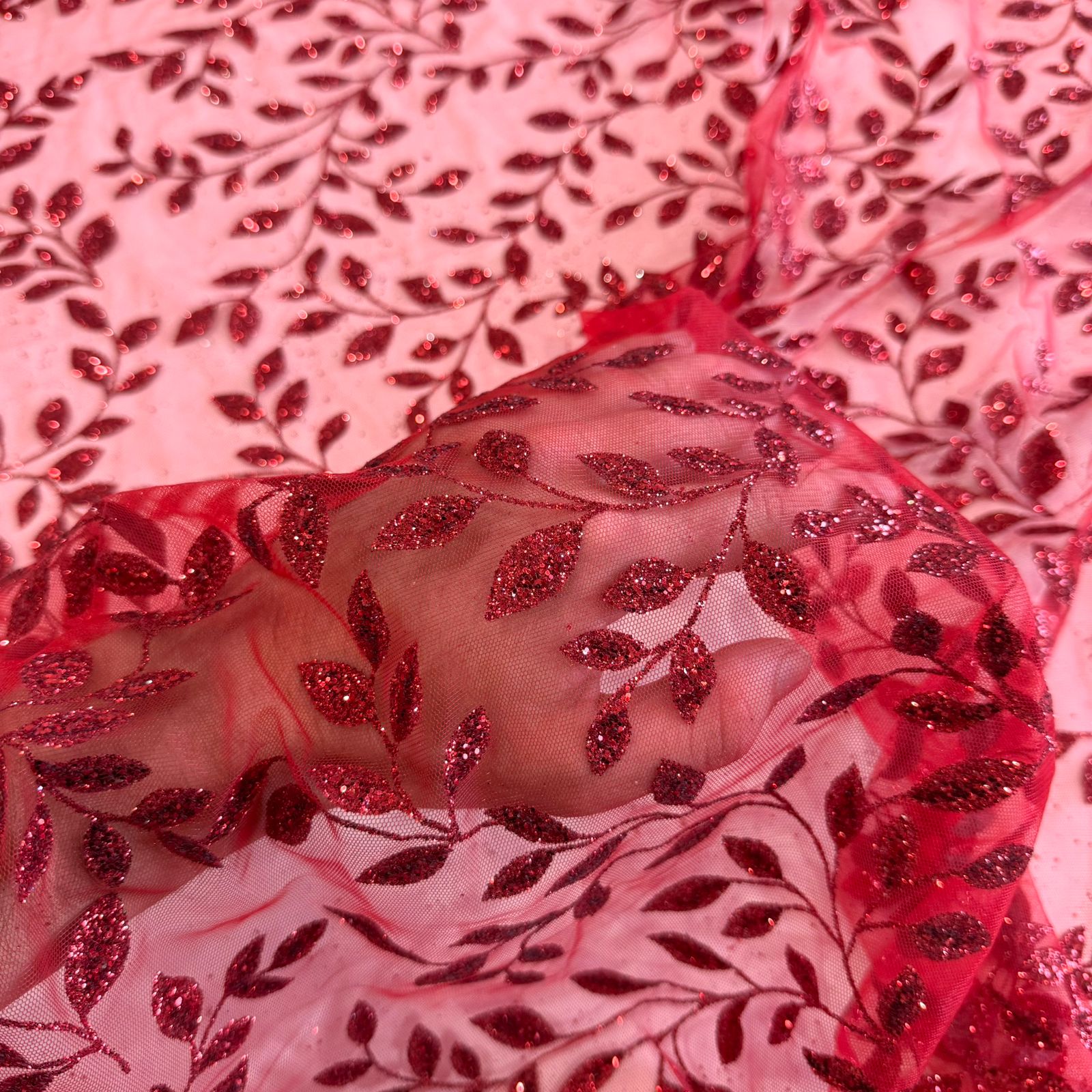 TECIDO TULE COM GLITTER TULIPAS | 1,45m | Vermelho