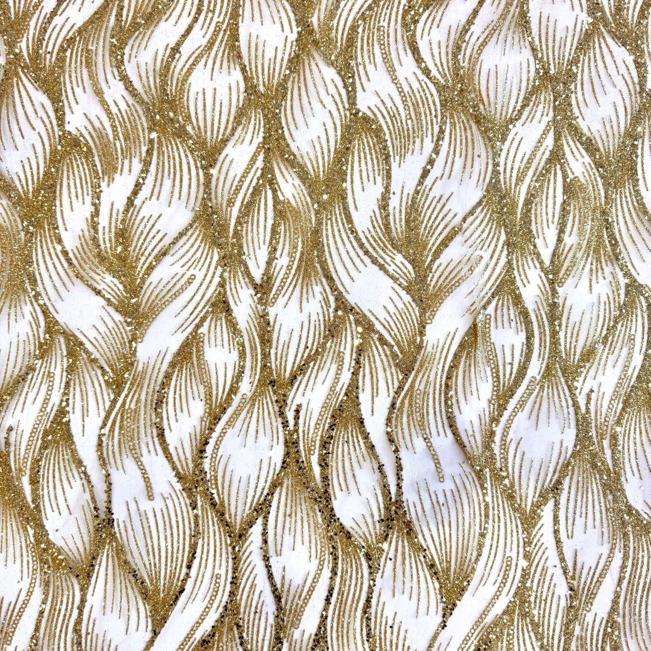 Tecido Tule Glitter Arabesco Ondulado | 1,50m - 100% Poliamida | Dourado