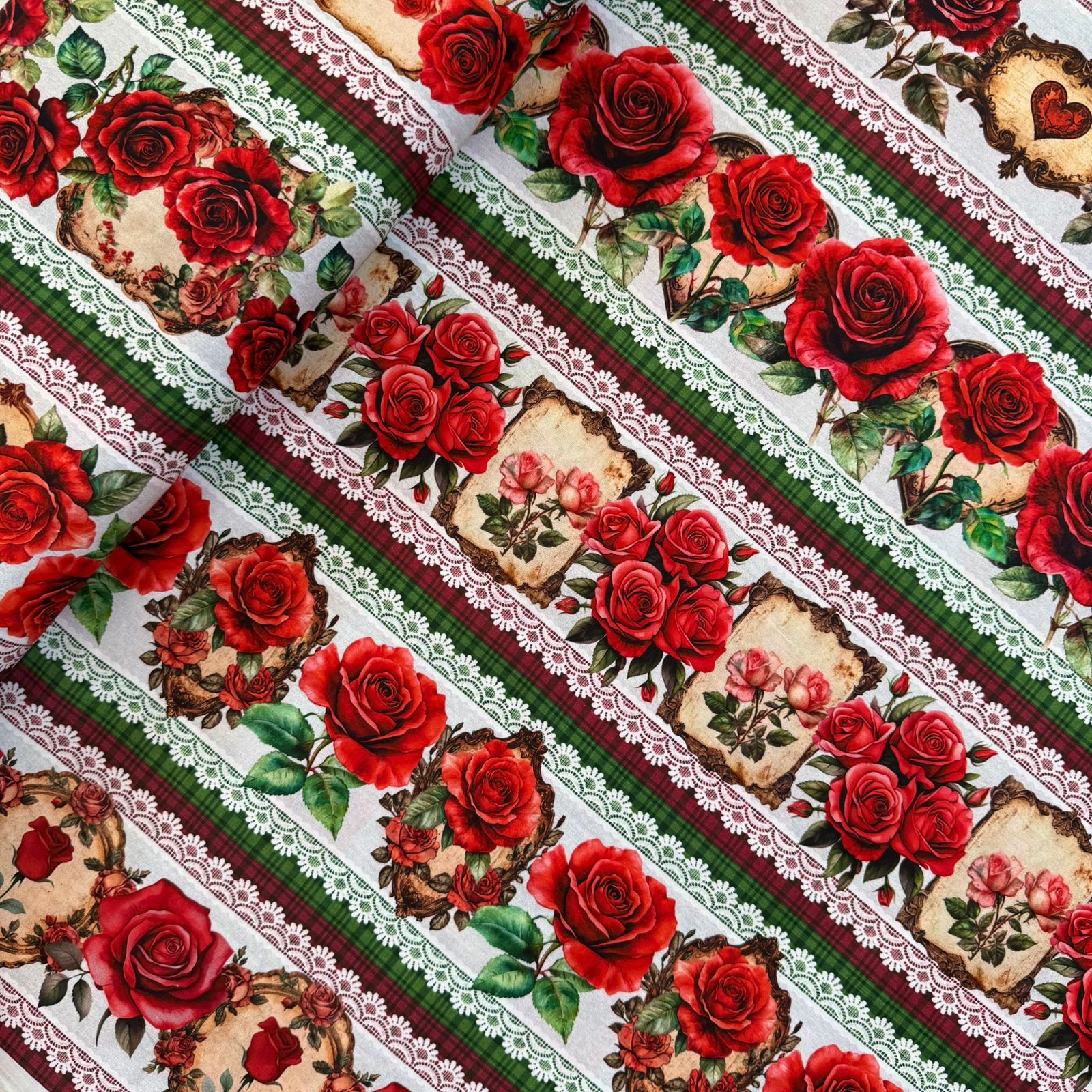 TRICOLINE BARRADA DIGITAL | 0,55cm X 1,50m - 100% Algodão | Rosas Vermelhas 3244
