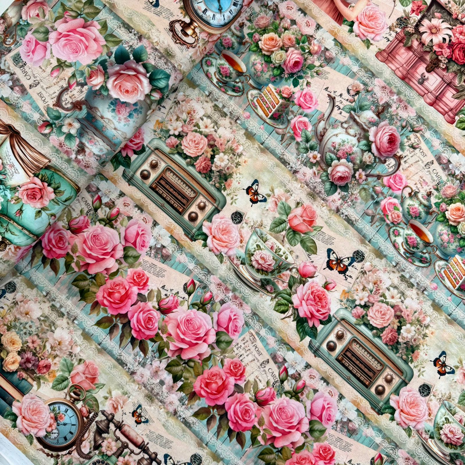 TRICOLINE BARRADA DIGITAL | 0,55cm X 1,50m - 100% Algodão | ROSAS VINTAGE 3248