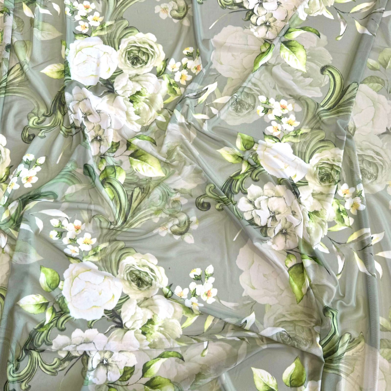 TULE COM ELASTANO ROMANCE DIGITAL | 1,60m | Floral Verde Claro 10