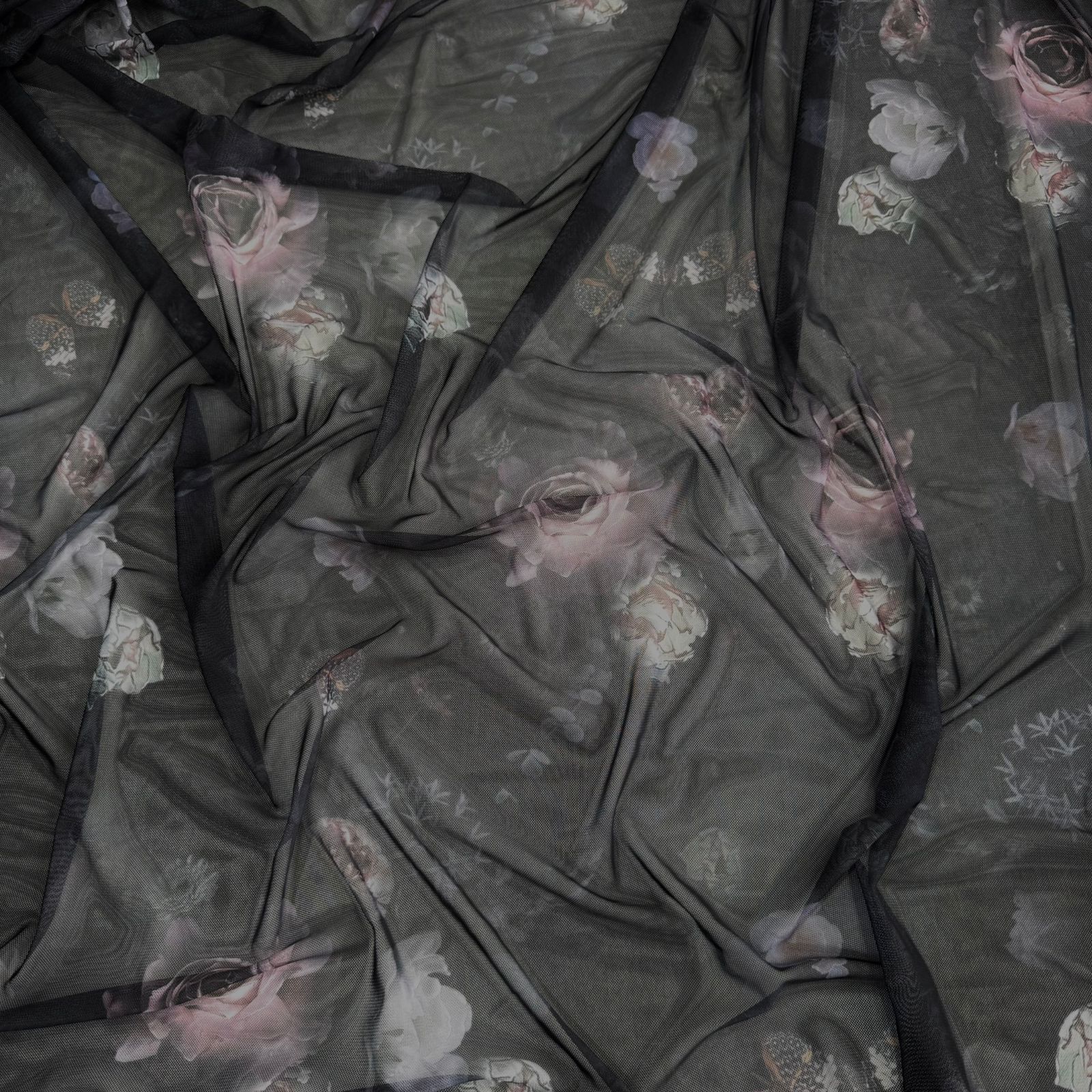 TULE COM ELASTANO ROMANCE DIGITAL | 1,60m | Rosas Black 13
